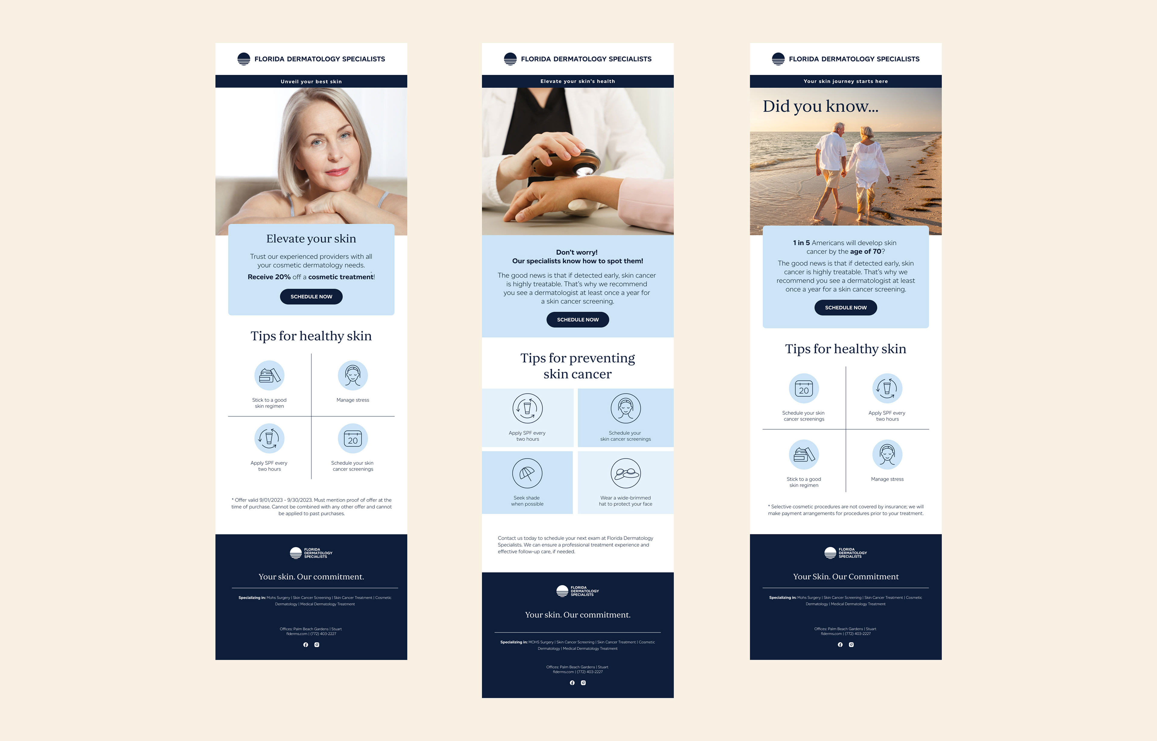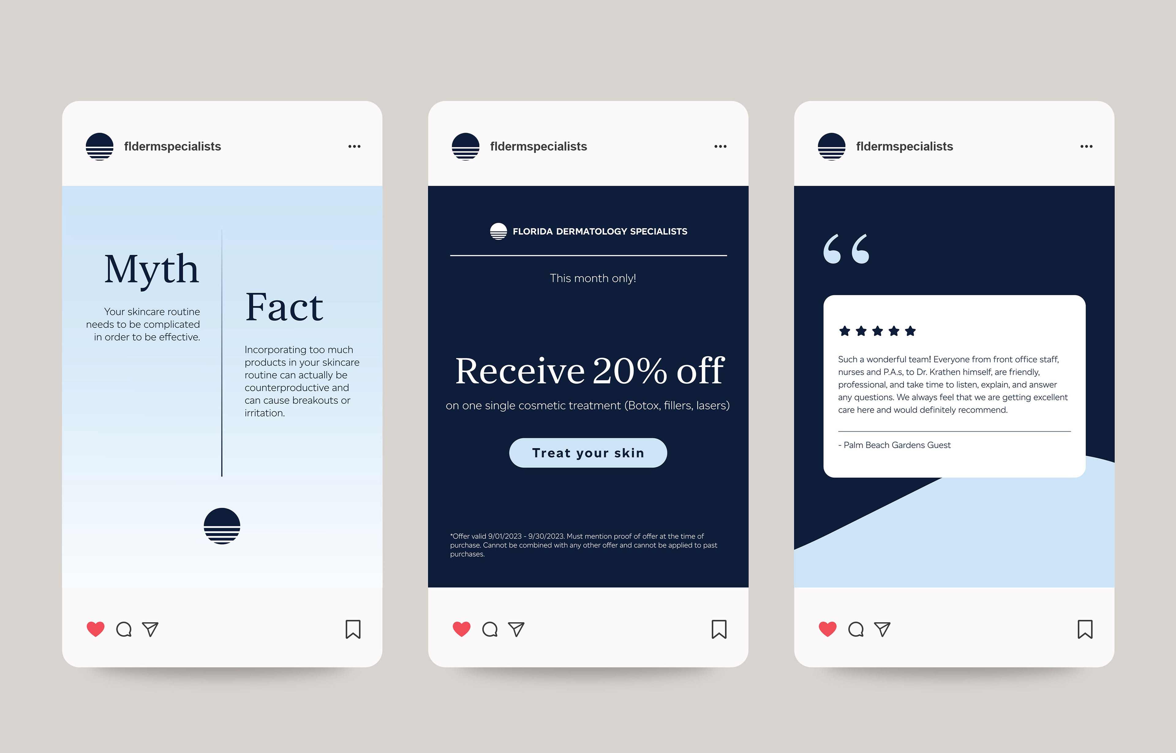 Florida Dermatology Specialists, led by Dr. Richard A. Krathen, is a dermatology practice in located in Stuart & Palm Beach Gardens, Florida. FDS offers comprehensive dermatologic care, including advanced skin cancer treatment, medical dermatology, and cosmetic dermatology. Specializing in Mohs surgery and a wide range of services , they focus on treating and preventing skin conditions while enhancing patient well-being. They were in need of a rebrand that emphasizes their commitment to high-quality care in maintaining healthy, rejuvenated skin.